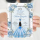 Invitation Mis Quince Bleu Floral Argent Couronne Quinceañera