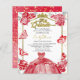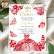 Unmask the enchanting allure of your quinceanera celebration with unique red dress-themed invitations. These bespoke invitations, inspired by lush red florals and whimsical butterflies, not only set the anticipation for the event but also hint at the stunning red quinceanera dress reveal. They're completed with confetti details and a tiara accent, embodying the celebratory grandeur of the special day.