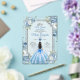 Dusty Blue & Silver Floral Quinceañera Invitation