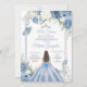 Dusty Blue & Silver Floral Quinceañera Invitation