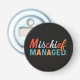 A playful and colourful design featuring the text "Mischief Managed" in a bold, playful font. The text is rendered in a vibrant, multi-colour palette, evoking a sense of fun and mischief.