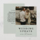 Vous avez besoin d'annuler ou de reporter votre mariage ou événement en raison d'une catastrophe malheureuse? Pandémie ? Hurricane Supadupas? Mort dans la famille ? Envoyez un avis à vos amis et à votre famille avec ce carte photo simple et de bon goût. L'arrière comprend un grand bloc de texte personnalisé avec le libellé suggéré. Il y a aussi de la place pour la signer. L'avant est orné d'un arrière - plan vert sage avec du texte noir. Les couleurs peuvent être modifiées en cliquant sur personnaliser. Idéal pour les mariées covides et les couples coronavirus.