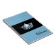 Notebook shown with a photo print of a gleaming Baby Blue coloured crown print on a black background and a personalized name. Notebook shown in Pool Blue. Customize this item and change the name to yours or take off, or purchase as shown.