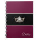 Carnet illustré d'une couronne argentée gris avec une étoile sur un arrière - plan prune-vin et un nom personnalisé. Customisez cet objet et changez le nom à votre nom ou retirez le nom et achetez tel quel. Plum-Wine, gris argenté et noir.