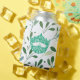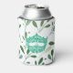 Can cooler shown in WHITE with an iconic American pageant crown printed on front and back in GREEN. Soft tone of multi-green leaf print on front and back. Personalize this item if desired or buy as shown,