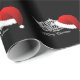 Christmas wrapping paper shown with a silver four-point crown and a festive red Santa hat laying askew on one side. Merry Christmas text below crown. Red, Silver and White on Black background. Customize this item or buy as is.