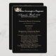 Créée sur 110 lb. stock de carte semi-brillante pour une impression photo optimale, cette carte de programme déjeuner classique recto verso vous attend pour personnaliser avec vos propres informations. A des angles arrondis pour un look élégant et tout Noir pour une liaison élégante. Le texte est fait en blanc et champagne et comporte une couronne dorée en haut à gauche. Dos a du texte et une couronne plus petite près du fond. Une touche sympathique pour votre brunch primé aussi. Choisissez des styles et des couleurs de texte, etc. Doit customiser les deux côtés de cet élément.