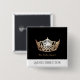 This Square shaped pin is shown in Black, White and Golden-Tan with sample text of Ladies Director. Customize by changing image, background colour and text to your own at right selection menu to begin if you prefer. Perfect for pageants and festival royalty of any kind. Print of a gleaming Gold Crown on front on Ivory background, pin closure on back.