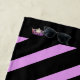 This beach towel is shown in a Black background with bold Orchid Pink colour stripes and with a print of a gleaming Orchid Pink pageant crowns on opposite ends. Personalize with your name, pageant title or favourite phrase.