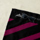 This beach towel is shown in a Black background with bold Merlot Wine colour stripes and with a print of a Silver-Grey Tiara pageant crowns on opposite ends. Text for you to personalize with your name, pageant title or favourite phrase.
