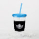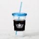 This acrylic tumbler with it 's own lid and straw has a black over clear background. A single silver crown image with white accent stripes are on both front and back. Lid and straw shown in blue. Choose your colour lid /straw set.