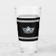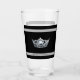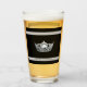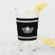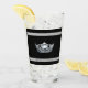 This glass has a silver gleaming crown image printed on over black background on clear glass with bold and pin striping. Text for you to personalize, shown as Miss Renton Valley on the bottom stripe.