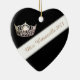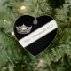 On Black background, this double sided ornament shows a white and silver-grey banner along with personalized text of your name or title and a print of a gleaming silver crown. Customize or buy as shown.