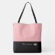 This cute stylish large tote bag is shown in a warm Coral Pink and black bottom colour block style with a pageant crown and custom text. Has Accent stripe.