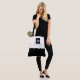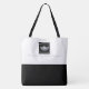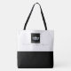This tote is shown in a crisp White with Black strap and bottom with a gorgeous gleaming Silver round crown on top side of front & back along with text for you to customize this tote or buy as is. Remember to customize both sides!