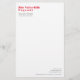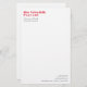 This letterhead or Personal stationery is shown in classic crisp White paper and Bright Red text at top left edge which is clearly captioned in bold enough print to get their attention along with your title & information. Lower left corner holds web site, phone and addresses. Add your logo if you prefer and customize further.