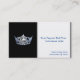 Shown in a standard size business card but on pearl card stock with a light shimmer. It has a glamourous Blue-Silver crown along with a space to fill in all your important details. Classic styling. Back is blank for you to personalize more with your address, hours and appointment time, if desired. Customize further by uploading your own head shot instead of the crown, if you prefer.