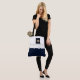This tote is shown in a crisp White, Black strap, Navy bottom with coordinating accent above and a gorgeous gleaming Golden round crown on top side of front & back along with text for you to customize this tote or buy as is. Remember to customize both sides!