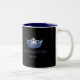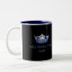 A gleaming Blue crown print poised front and centre on each side of this coffee/cocoa mug. Shown on a Black & White mug with a Navy interior and coordinating Blue text. Customize your interior and Personalize the sample text to your own. Shown as Miss Hamilton 2018.