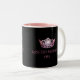 A gleaming Pink crown print poised front and centre on each side of this coffee/cocoa mug. Shown on a Black & White mug with a Pink interior and coordinating Pink text. Customize your interior and Personalize the sample text to your own. Shown as Miss Des Moines 1982.
