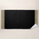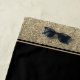 This beach towel is shown in a Black towel with ends in Gold faux glitter colour and a coordinating solid stripe.