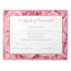 Created from an autograph pad, this stack of certificates of achievement would be a great enhancement for your organization or pageant to hand out to multiple entrants or qualifiers. A lovely way to show support and congrats to all those for entering. Shown with borders of Pink Roses with a Pink colour of "certificate of achievement" at top beneath roses and all the corresponding text you would need on white with grey text body. Has an inner thin border of golden. Must Customize the centre text area of this item.