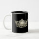 A gleaming Platinum crown print poised front and center on each side of this coffee/cocoa mug. Shown in Black & White mug with Black interior. Customize and Personalize or buy as designed.