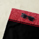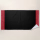 This beach towel is shown in a Black towel with ends in Red faux glitter colour and a coordinating solid stripe.