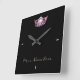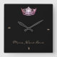 Choose between round or square styles of this gorgeous and sleek clock with pretty details and crown image along with text for you to customize with name or pageant title. Black and Pink crown only.