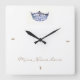 Choose between round or square styles of this gorgeous and sleek clock with pretty details and crown image along with text for you to customize with name or pageant title. Blue and White crown only.