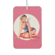 This automobile air freshener features the painting entitled “Miss Behavin'” by pinup artist, Elizabeth Austin. The original artwork was 20″x30″ acrylic on illustration board. Artwork copyright Elizabeth Austin.