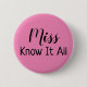 Miss Know It All Name Tag Button