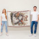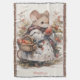 This customizable throw blanket features a charming mouse collecting rose hips, depicted in a classic Beatrix Potter-inspired style. The mouse wears a long white dress and plaid muffler, carrying a basket among the rose bushes. An elegant cursive name can be added to the bottom of the design, creating a unique and personalized item. This blanket is ideal for children's rooms, cozy reading areas, or as a thoughtful gift. It would also look great as a wall hanging. It combines detailed animal art with a personal touch, perfect for those who appreciate storybook themes and traditional illustrations.