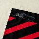 Red stripes mingle with sexy Black on this beach towel. Both ends have space for customization and feature a fancy swirl Silver-colour crown print on each end of the towel. Customize or buy as designed.