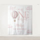 This charming first birthday party photo backdrop features a cute pink hot air balloon and clouds, along with elegant script typography. Designed by Thisisnotme©