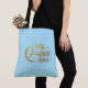 This shoulder tote bag is shown with a Quinceanera gold glittery print design.