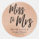 A modern and chic round sticker saying Miss to Mrs perfect for your bridal shower invitation and favour bags seal.