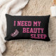 Lumbar style pillow shown in Black/Pink with a print of a Pink-Silver star tiara crown and says I Need My Beauty Sleep. Customize this item or just buy as is.