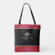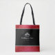 This tote bag is shown in two tone colour scheme. Faux red and silver coloured glitter band at top and bottom with black strap handles. Black bag and on both sides is an attractive crown with white colour rounds-like-pearls. Sample text reads " Miss Washington State 2019".