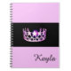 Notebook shown with a photo print of a gleaming Orchid coloured crown print on a black background and a personalized name. Notebook shown in Orchid. Customize this item and change the name to yours or take off, or purchase as shown.