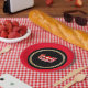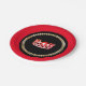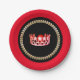 These pageant festive paper plates are great for serving up some fun (and easy clean up too) for your next pageant get together. Add your pageant theme or pageant name if desired. Shown here is a bright Red rim and a gleaming Coral-Red crown print in the centre over chic Black background. Gold coloured regal trim on the inner rim. Personalize or buy as designed.