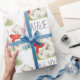 Decorative bear hugging a red heart whimsy watercolor art missing you wrapping paper. Ideal to wrap sent gifts in to loved ones whom you are missing dearly. Personalize with the name of the one you love and two messages currently reads Miss you, Love you, Natalie. © Original watercolour teary bear art and design by Sarah Trett for www.mylittleeden.com on zazzle.