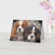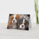 Two Cavalier King Charles Spaniels look into the camera with a lonely look and message of "Missing One" on this one of a kind missing you greeting card.