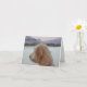 Missing You Notecard features a Golden Doodle looking into the distance, with a lake and mountains in the background. Verse says, "Just sitting here... missing you." Unique notecard to send to any dog lover or Golden Doodle owner to let them know you miss them.