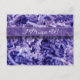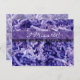 Close-up photography captures purple crinkled and shredded paper strips on the postcard cover with the same reduced opacity image on the back. Customize the template text for your occasion.
