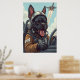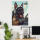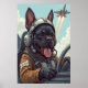 Get ready for takeoff with this daring Air Force Frenchie! Dressed in a detailed pilot flight suit with “WOOF-ONE” stitched on his chest and a bone patch on the arm, he’s locked into his cockpit and grinning wide. His helmet visor reflects bright skies, and a second jet rockets behind him, leaving whimsical smoke curls in its wake. It’s bold, silly, and sky-high fun—perfect for kids’ rooms, offices, or aviation-themed décor collections.