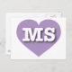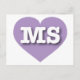 This postcard features a lavender heart containing the bold, white, upper case letters MS, the official abbreviation for Mississippi, the magnolia state. The reverse side of the postcard is blank, awaiting your customized text or handwritten sentiments.