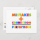 Teachers who want to still a message that it's okay to make mistakes and that practice and hard work leads to success will love these inspirational T-shirts, mugs, buttons, bags, cards, stickers, key chains, and other items with multicolor text design Mistakes Plus Correction Equals Perfection!