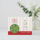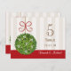 Cartes mariages mignonnes et fantaisistes, sucrées et romantiques, avec une boule de baiser et une pomandre ornée de feuilles festifs, de baies blanches et d'ornements dorés accrochés à l'arc rouge. Une frise rayée crème et pois motif arrière - plan et frontière rouge complètent ce look élégant de vacances et/ou de Noël. Oeuvre © Chrissy H. Studios, LLC. Tous droits réservés.