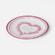 Mistletoe heart wreath drawing red and white winter wedding paper plate. Add your own couples' name and wedding date in a red on crisp white. Other colours and matching wedding items available. © Original drawing and design by Sarah Trett for www.mylittleedenweddings.com on Zazzle.